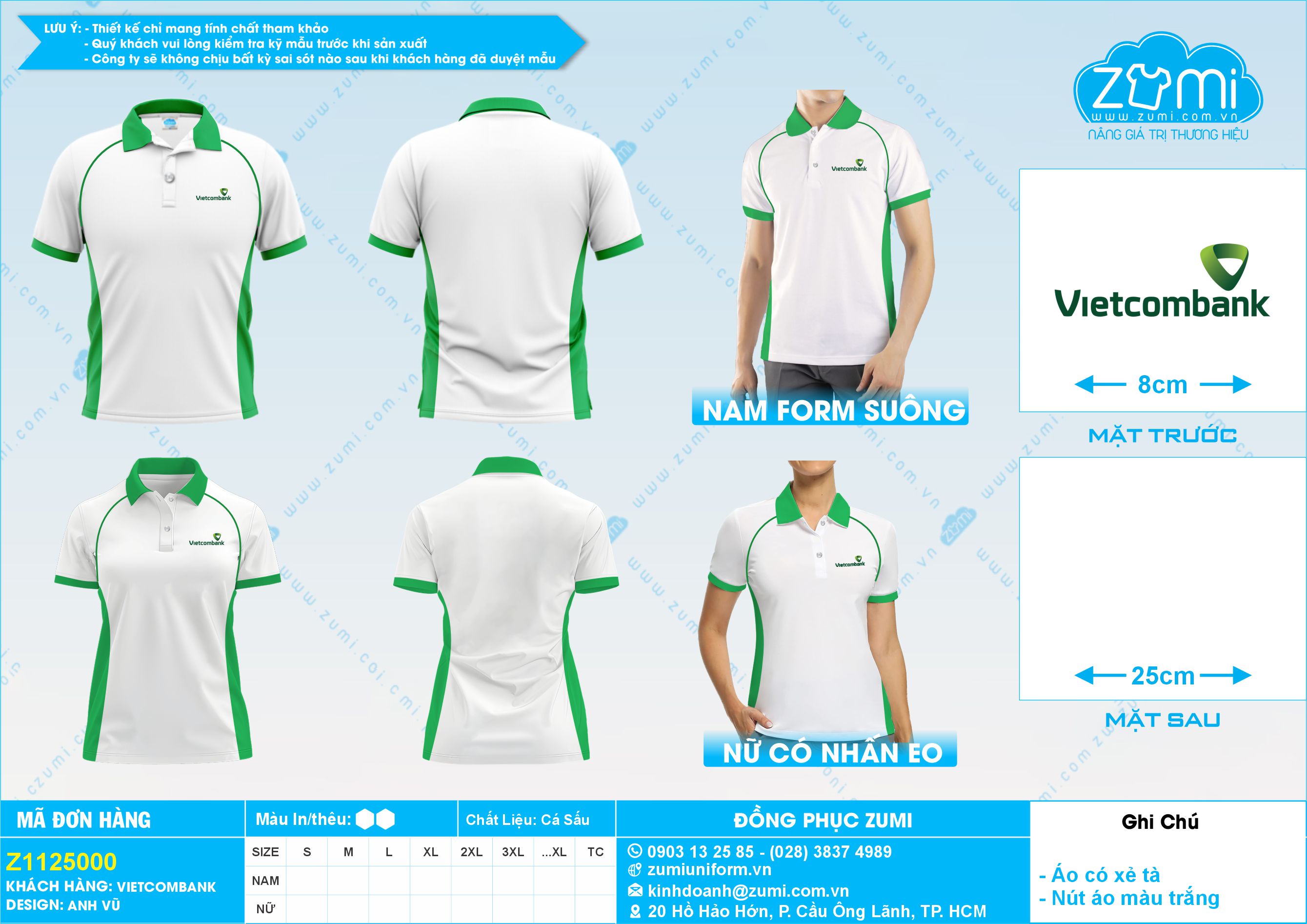 Zumi gửi tới bạn một mẫu thiết kế tham khảo Áo thun đồng phục Cổ Trụ Ngân Hàng Vietcombank