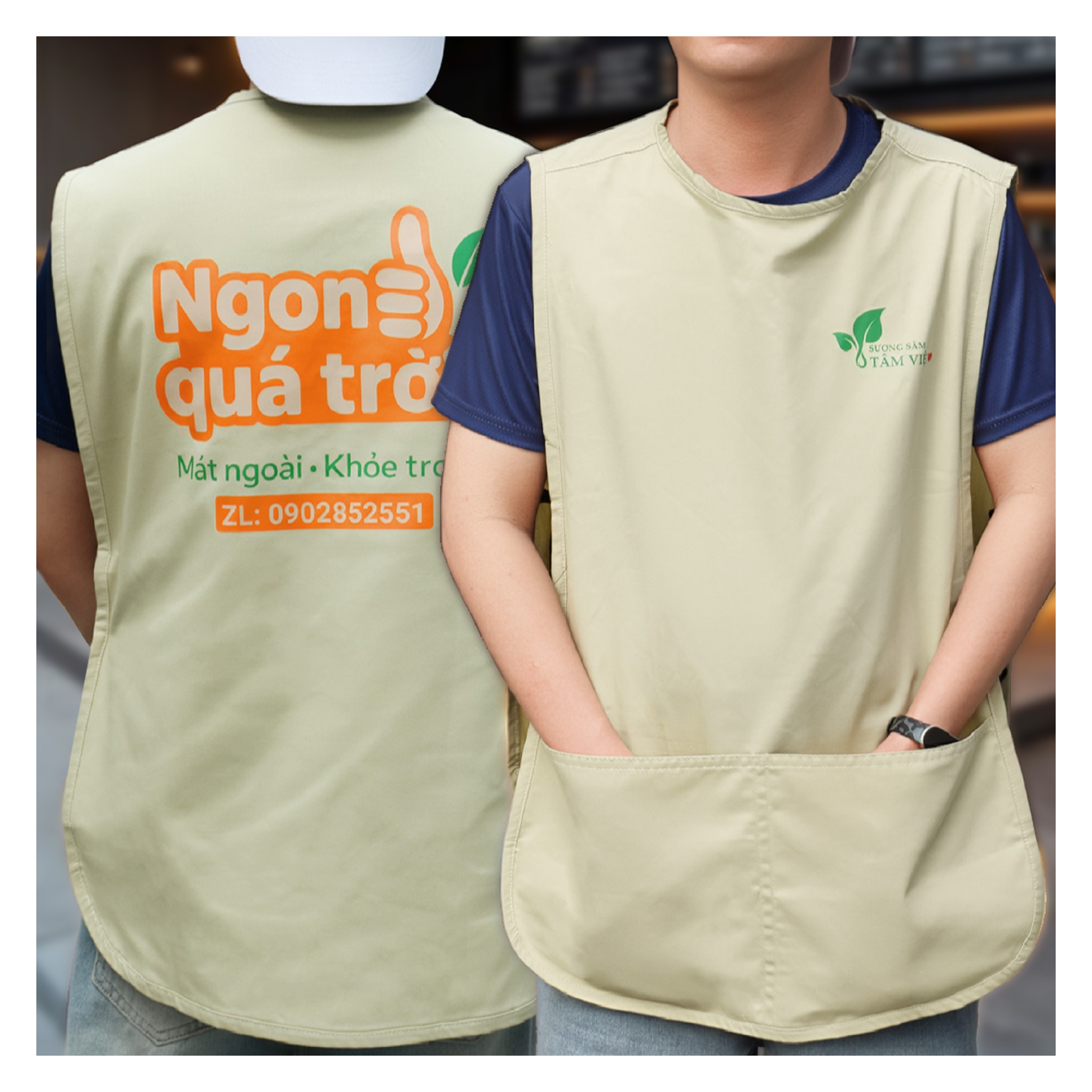 Tạp dề ngắn đeo quanh hông có kích thước rất ngắn, ở ngoài sẽ có may thêm túi để người mặc có thể đựng sổ nhỏ, bút và các vật dụng cần thiết khi làm việc. Do đó, các loại tạp dề cafe, phục vụ, buồng phòng thường sử dụng loại tạp dề ngắn này. Không những thế, mẫu phụ kiện này còn có thiết kế đẹp mắt, chỉn chu nên được nhiều doanh nghiệp lựa chọn.