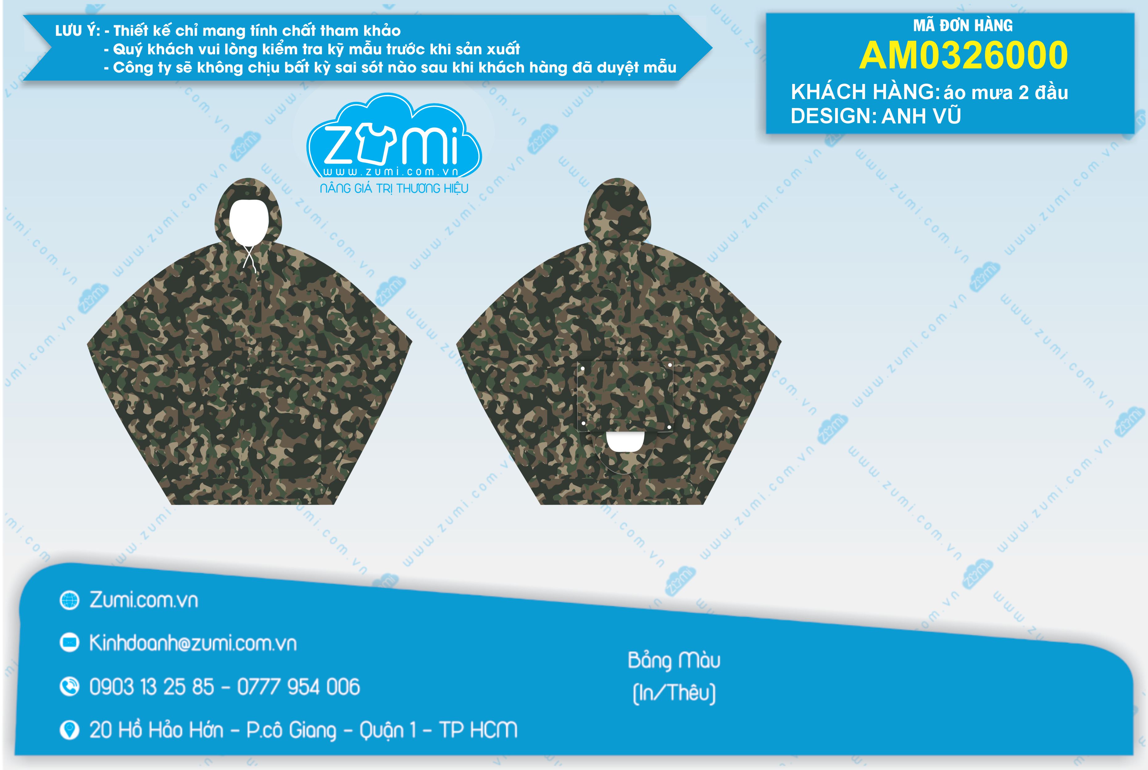 Với màu sắc và chất liệu đa dạng, Zumi tin chắc có thể mang tới cho bạn những thiết kế áo mưa hài lòng nhất. Zumi gửi bạn tham khảo mẫu áo mưa 2 người