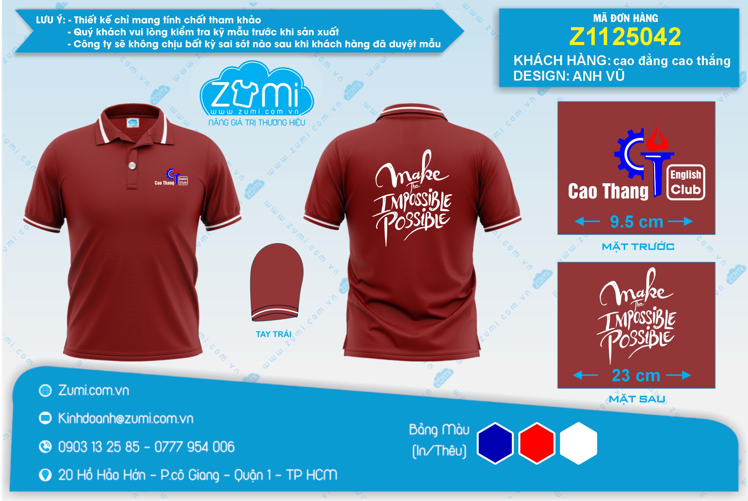 Zumi gửi tới bạn một mẫu thiết kế tham khảo Áo thun đồng phục Polo CLB Sinh Viên Cao Thắng