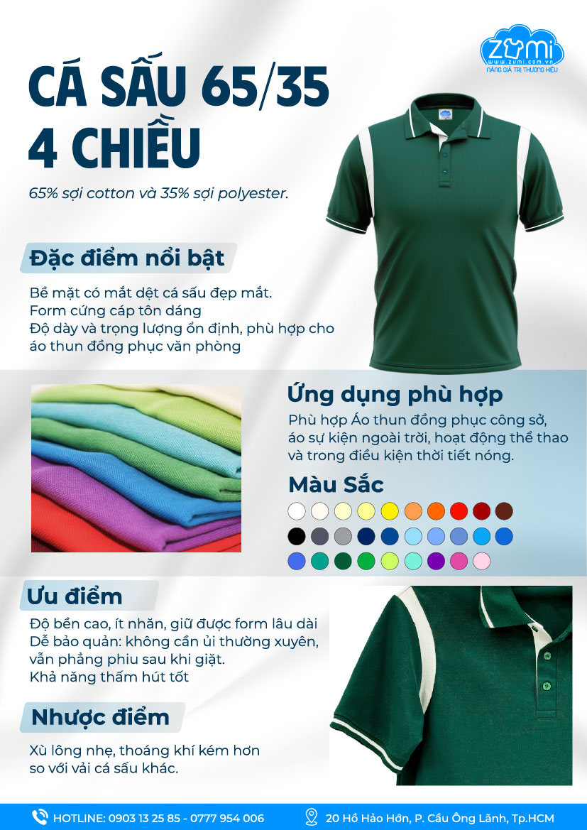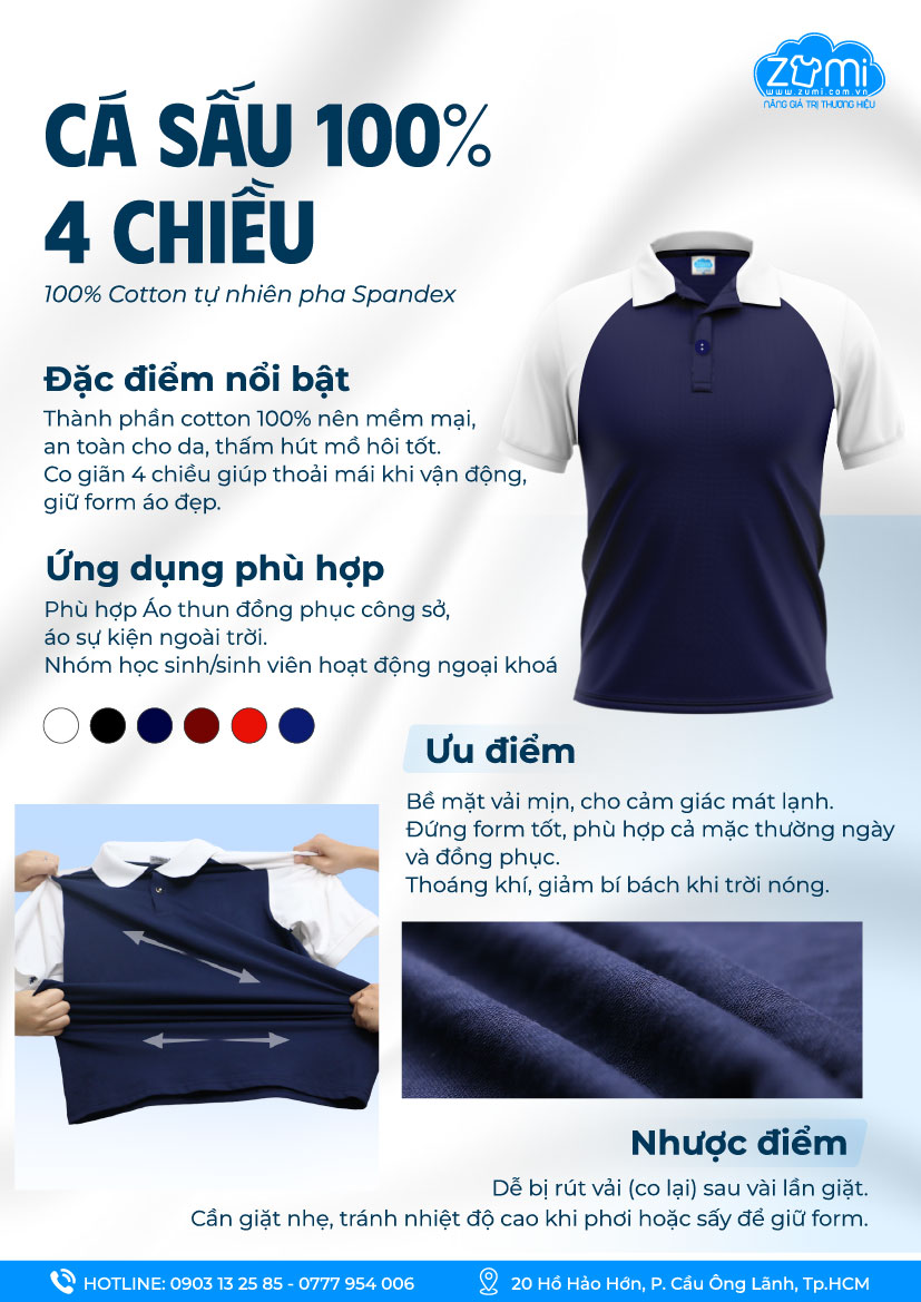 ✦ Áo mặc lâu dài, giặt nhiều → CVC hoặc cá sấu 100% cotton.