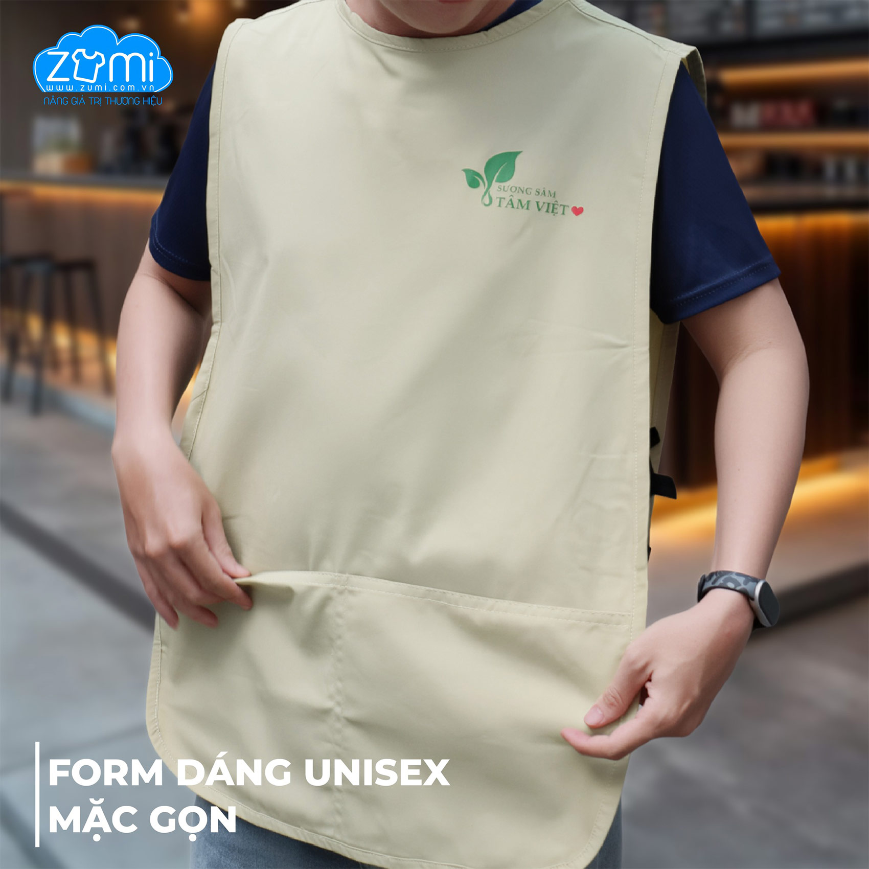 Tạp Dề Đồng Phục Ghi Lê - Quán Sương Sâm Tâm Việt mẫu đẹp, giá tốt mang lại sự tiện lợi tối đa, chống nước hiệu quả, đặc biệt phù hợp cho môi trường F&B, bán lẻ hoặc dịch vụ.