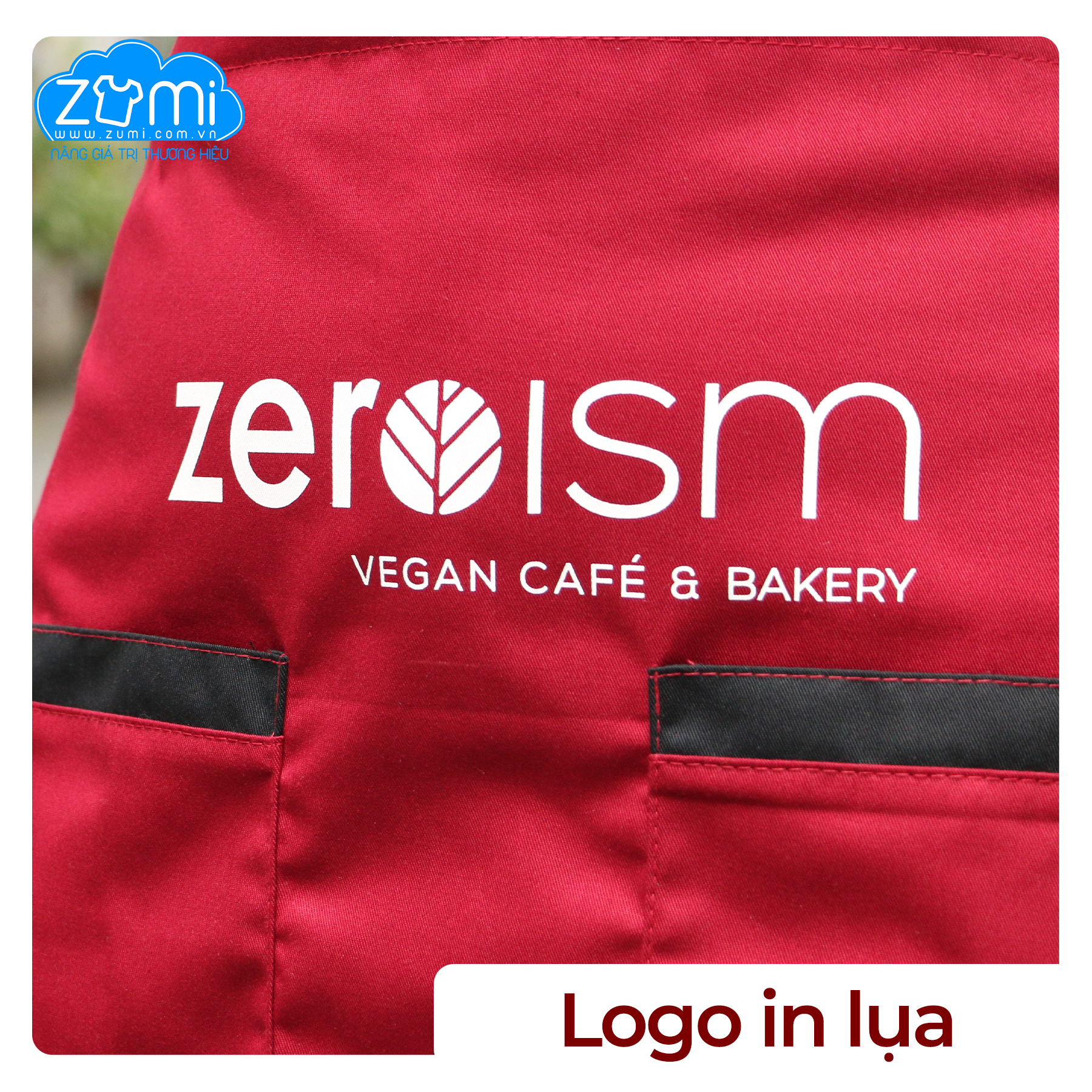 Tạp dề Đồng Phục F&B Zeroism được thiết kế đơn giản nhưng nổi bật, phù hợp cho ngành F&B như quán café hoặc tiệm bánh.
